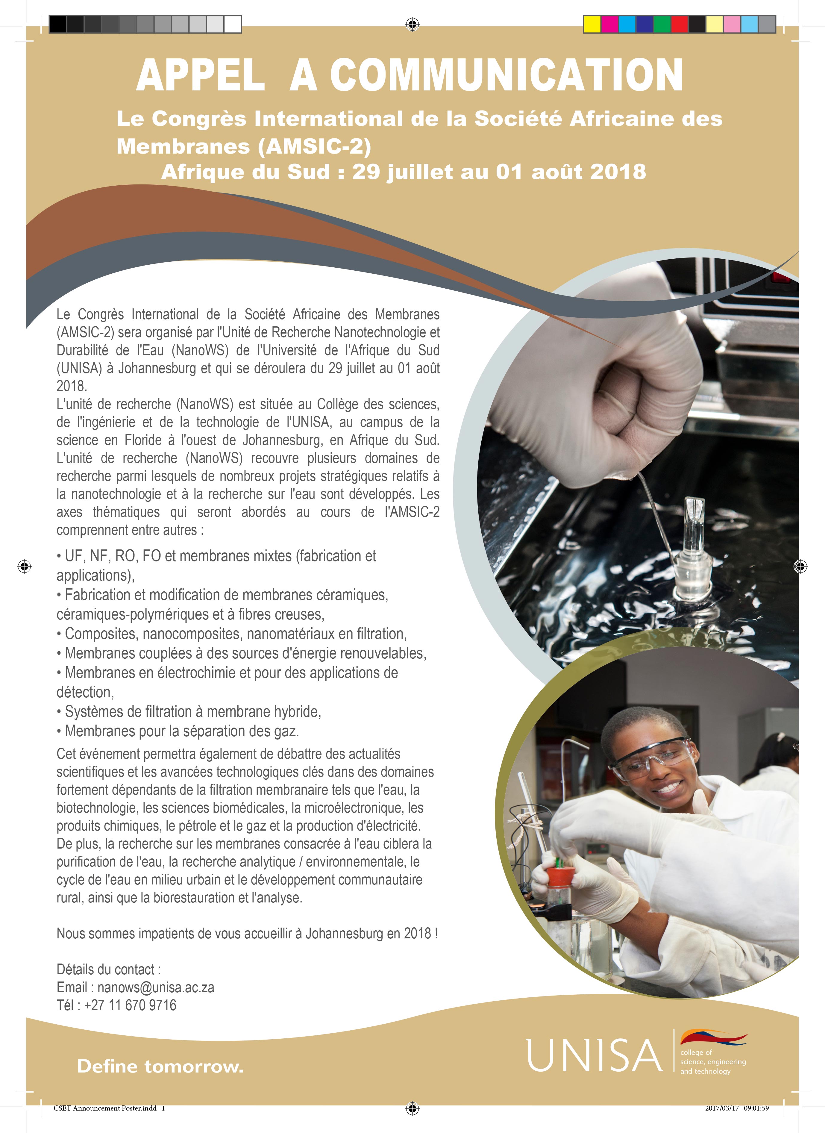 AMSIC offrira de nombreuses opportunités pour exposer les derniers progrès en impliquant universitaires et industrielles pour partager avec les experts de la communauté des membranes et de la filtration.